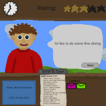 You are the Town Warden, your job is to decide which places in your town various people are allowed to visit and then send them to town!